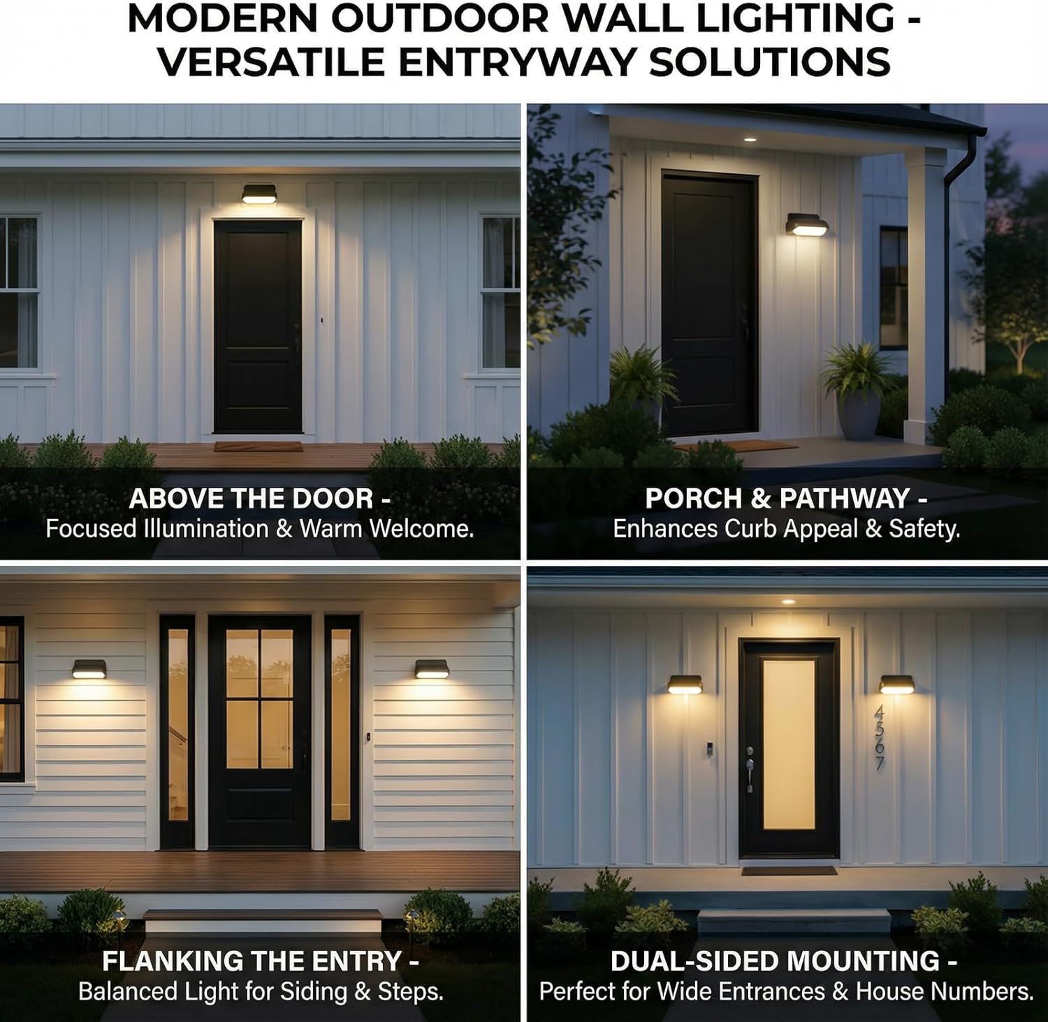 • Broad Application: Ideal for outdoor and indoor locations like entryway, above door, yards, porches, gardens, pathways, bathrooms, bedrooms, balconies, living rooms, offices, and garages as a night light.